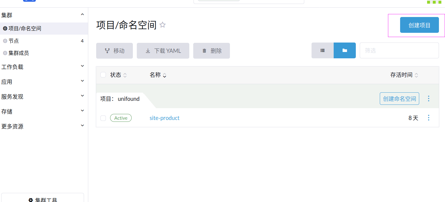 - 创建命名空间(一个项目中可以有多个命名空间,一个命名空间中部署的容器可以通过clusterip进行访问)