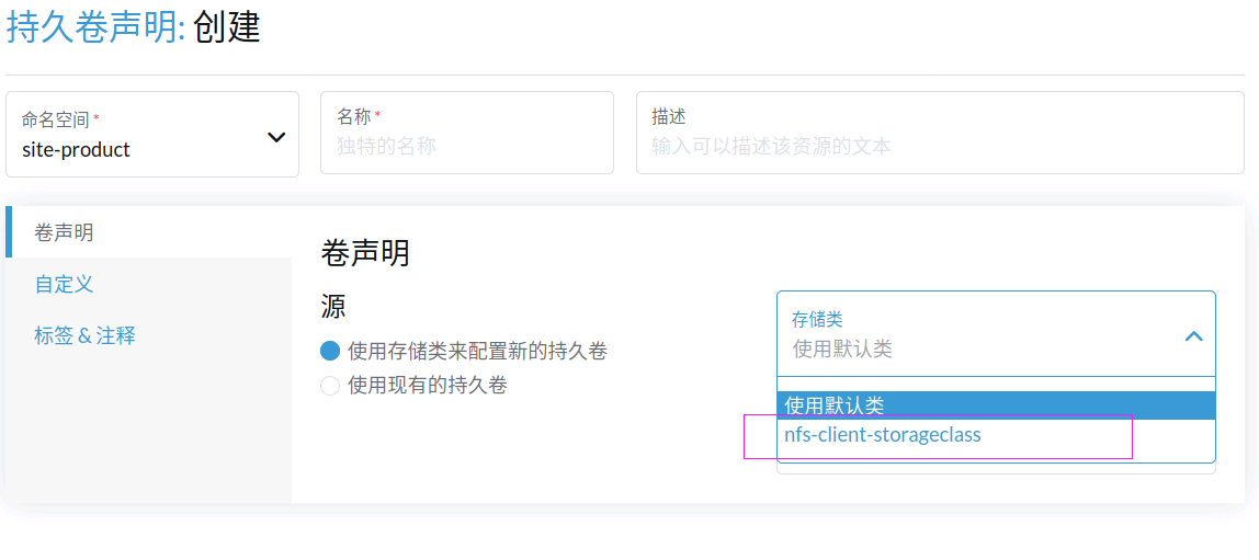 – 创建持久卷声明(PV)