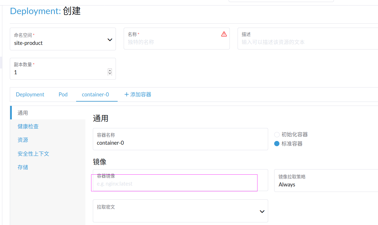 - 部署容器(在工作负载/Deployments下)